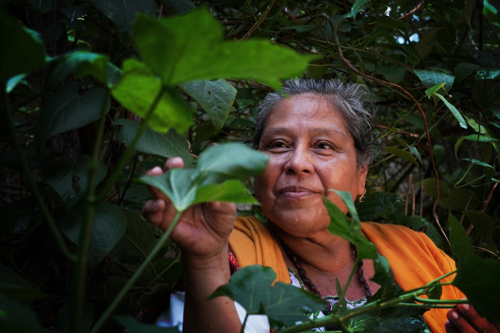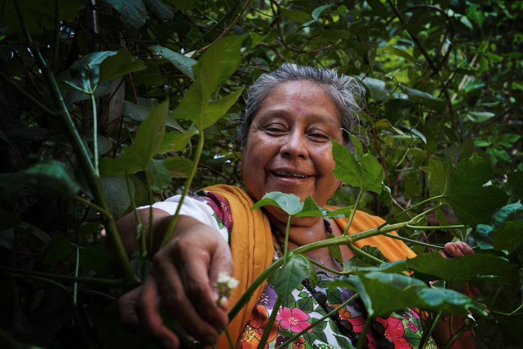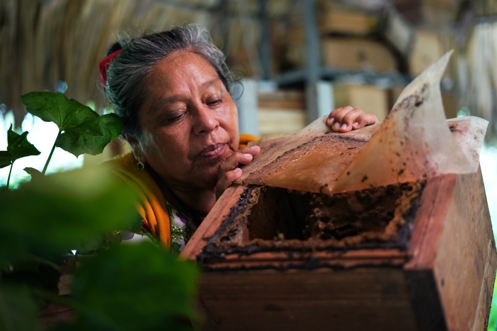 Chalé Euan practica la meliponicultura, crianza de esta abaje ancestral maya. También es médica tradicional, partera, y profesa un amor infinito hacia la naturaleza. Hace 14 años formó una cooperativa junto con otras mujeres, para la crianza de esta especie, y preparar diversos productos para comer a base de miel.